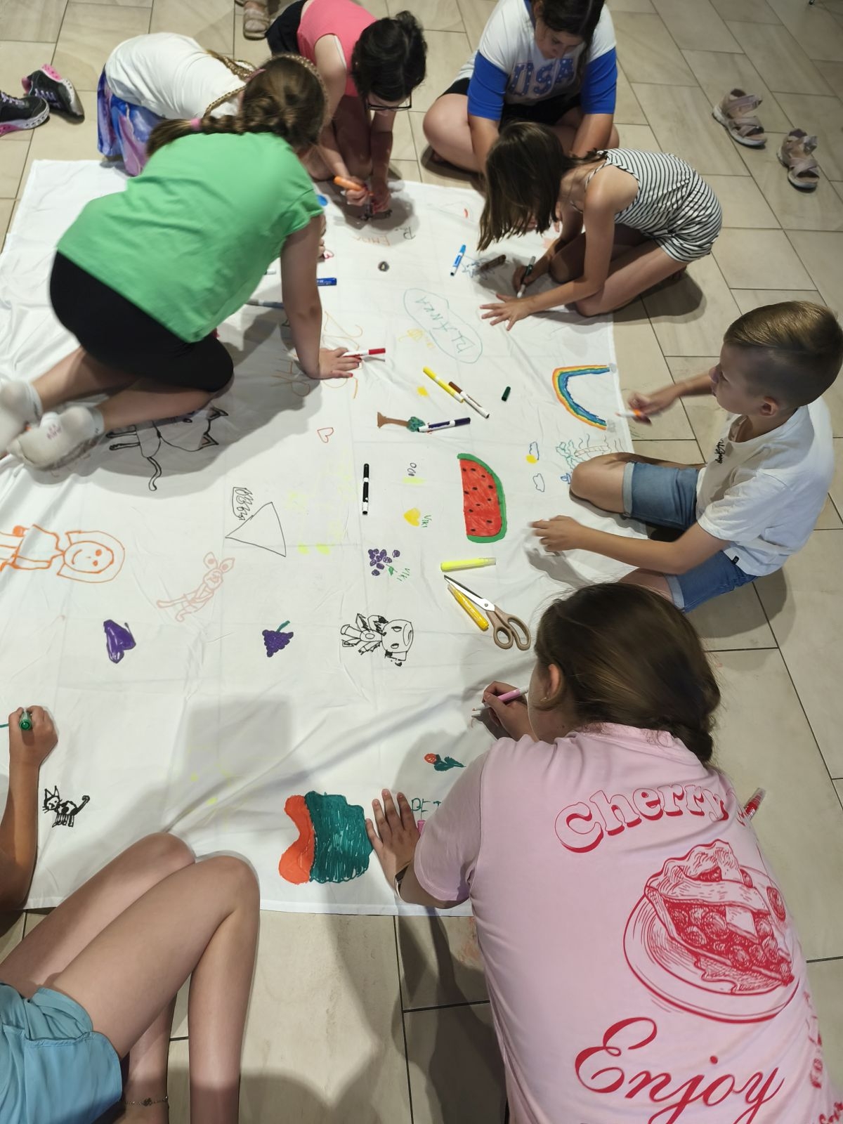 A gyerekek gyorsan összebarátkoztak, majd máris belevetették magukat a közös játékba és kézműves foglalkozásokba. Az egész hetünk tele volt izgalmas programokkal. A gyerekek betekintést nyerhettek többek között a kézműves csokoládé készítés világába, sári népviseleti ruhák kerültek bemutatásra, ahol megcsodálhatták a gyönyörű, színes öltözékeket. Színjátszó foglalkozáson vehettek részt majd színészi tehetségüket ki is bontakoztathatták a korhű népviseletben, ugyanis előadtak egy hagyományos sári lakodalmast. Népi játékokat ismerhettek meg és próbálhattak ki, interaktív állatbemutató keretében tudhattak meg többet környezet-, és állatvédelem témában. Programunk része volt egy-egy kirándulás, többek között a Csömöri Tót Hagyományok Háza is. Itt az ifjak más szemszögből merülhettek el a tót kultúrában. Ellátogattunk a Fájdalmas Szűzanya Kápolnához is, ahol a helyi plébánossal közösen jártuk körbe az épületet, és hitéleti beszélgetést folytattunk. A Sári Rétesházban interaktív módon tanulhattuk meg a hagyományos réteskészítés fortélyait. Természetesen a kóstolás sem maradhatott el, a gyerekek örömmel falatozták a friss rétest, majd egy utolsó fagyizással búcsúztak a tábortól.